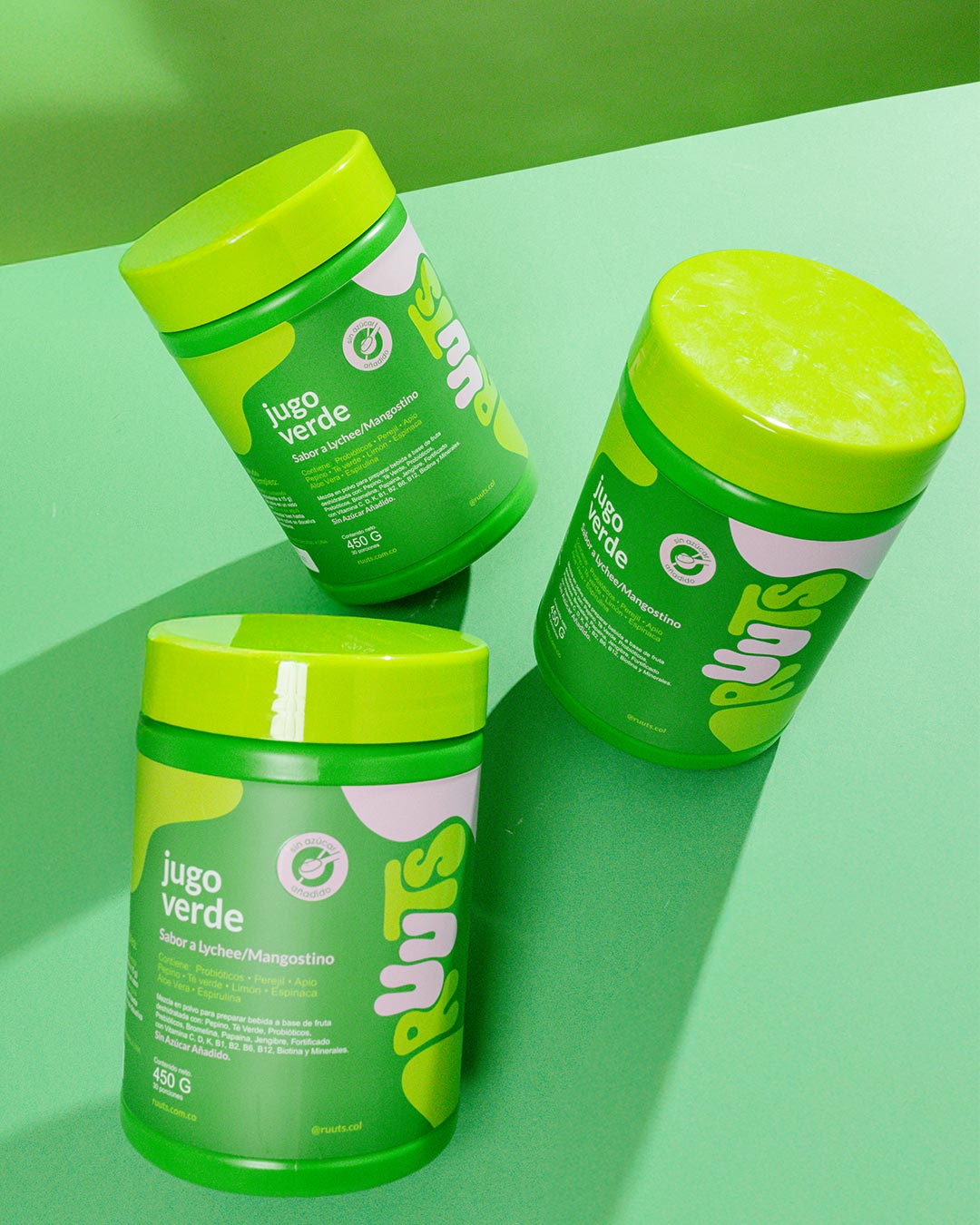 El Combo 3 RUUTS incluye 3 tarros de jugo verde en polvo.